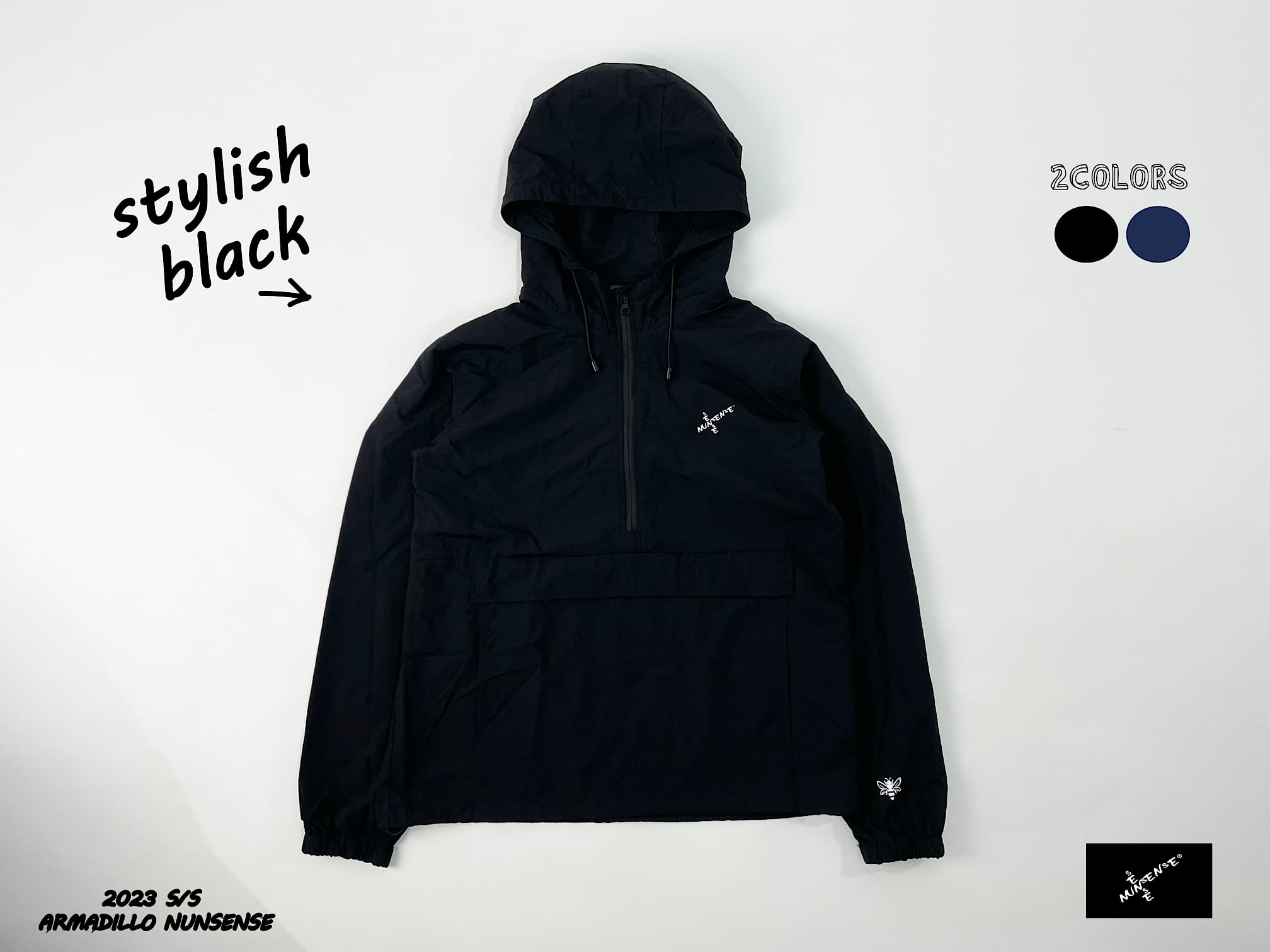 スポーティやアウトドアのイメージが強い、アノラックパーカーをスタイリッシュに。左胸にブランドロゴ、左袖に蜂をモチーフに自然とスタイリッシュなデザイン。機能面でも撥水加工を兼ね備えた商品となります。